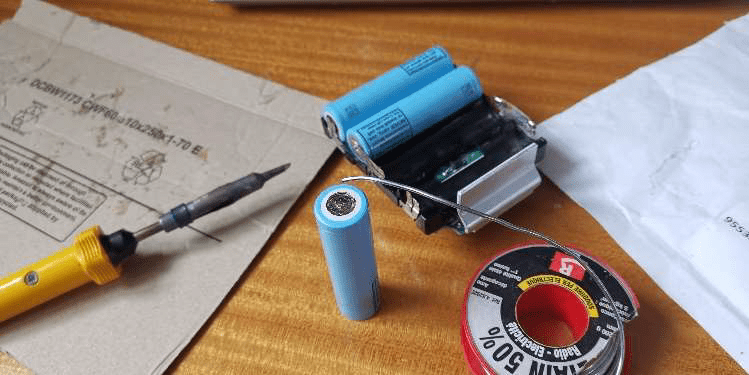 Avant de souder sur le bloc, il est important de réaliser un étamage (dépôt de soudure) sur à la fois le + et le – de chaque pile et sur les cosses du bloc. Ainsi, à la soudure, il y aura un minimum de surchauffe, ce qui évitera un éclatement de la pile (cf l’expert Remi).